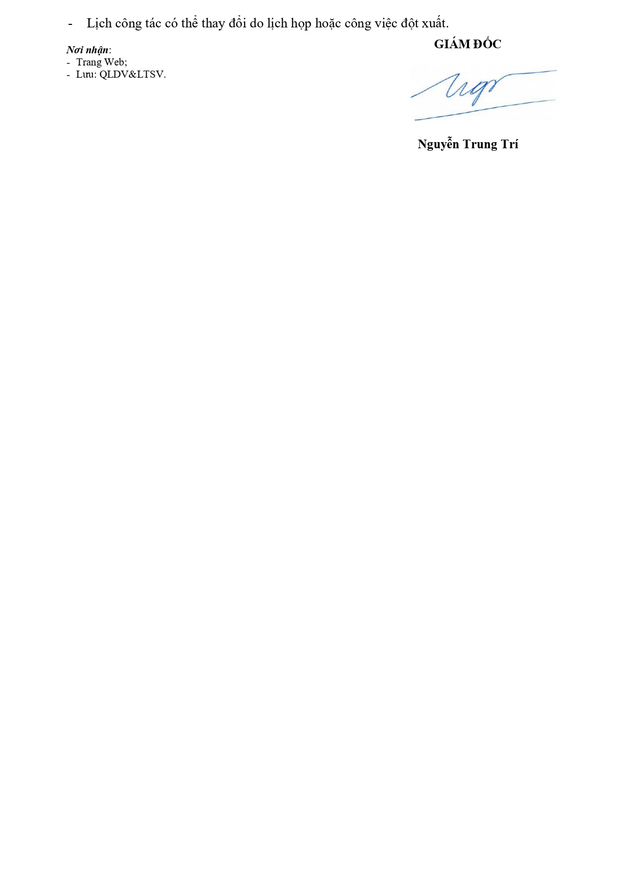 Lịch công tác tuần