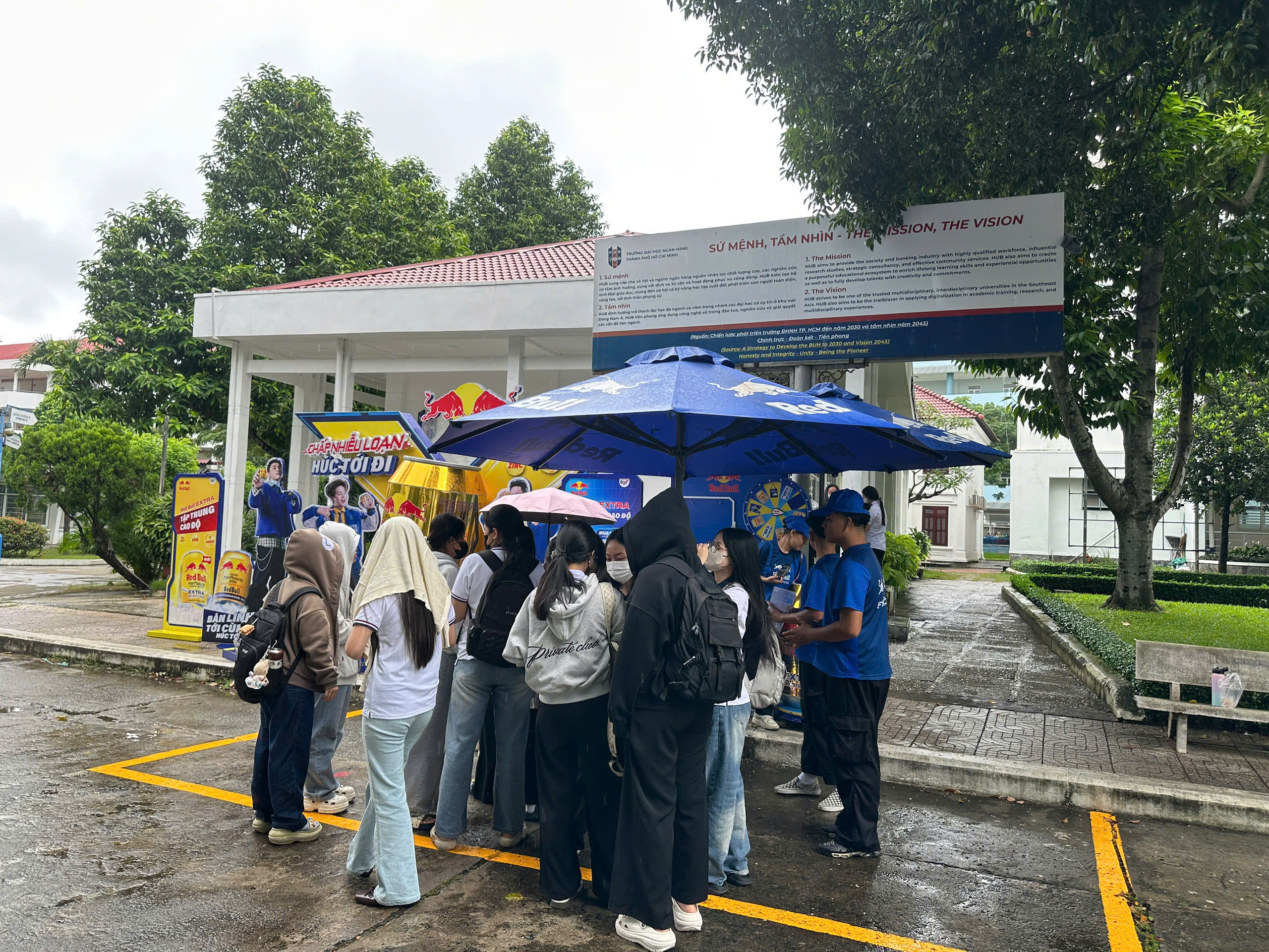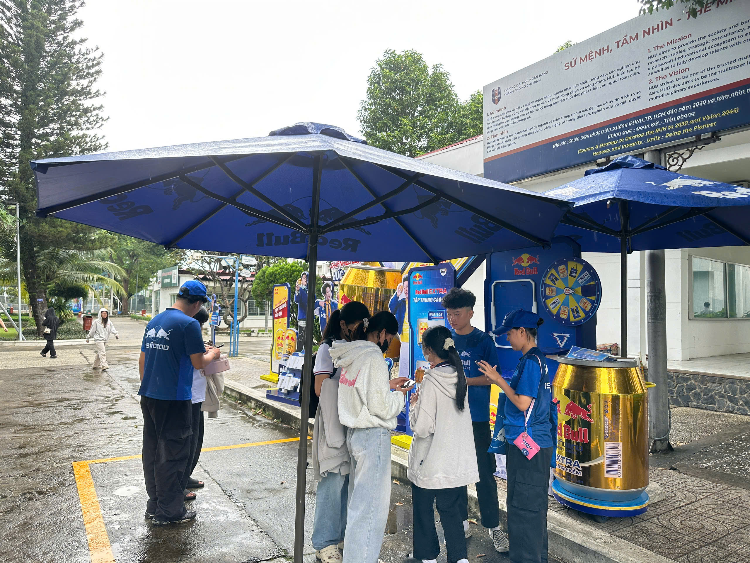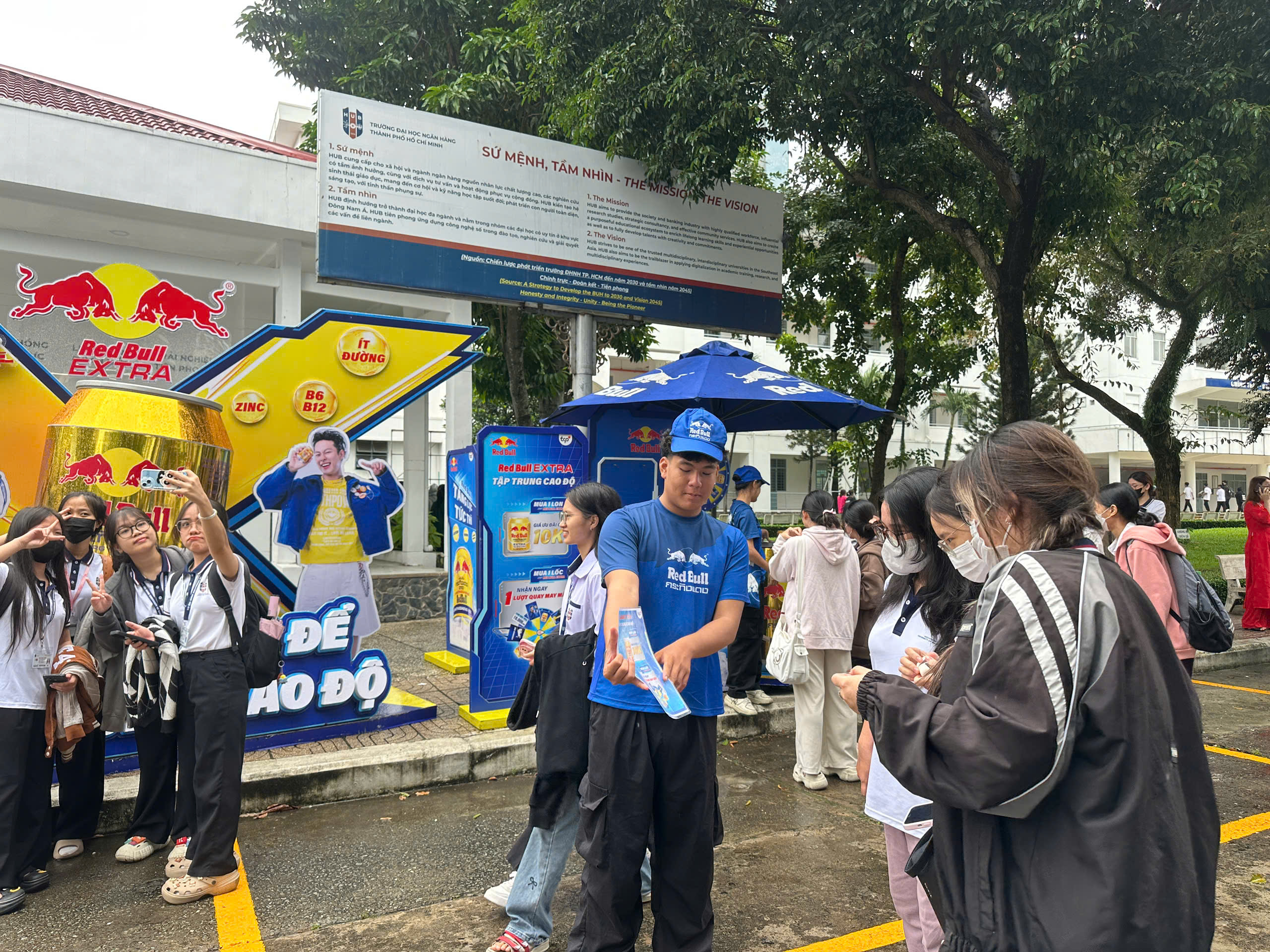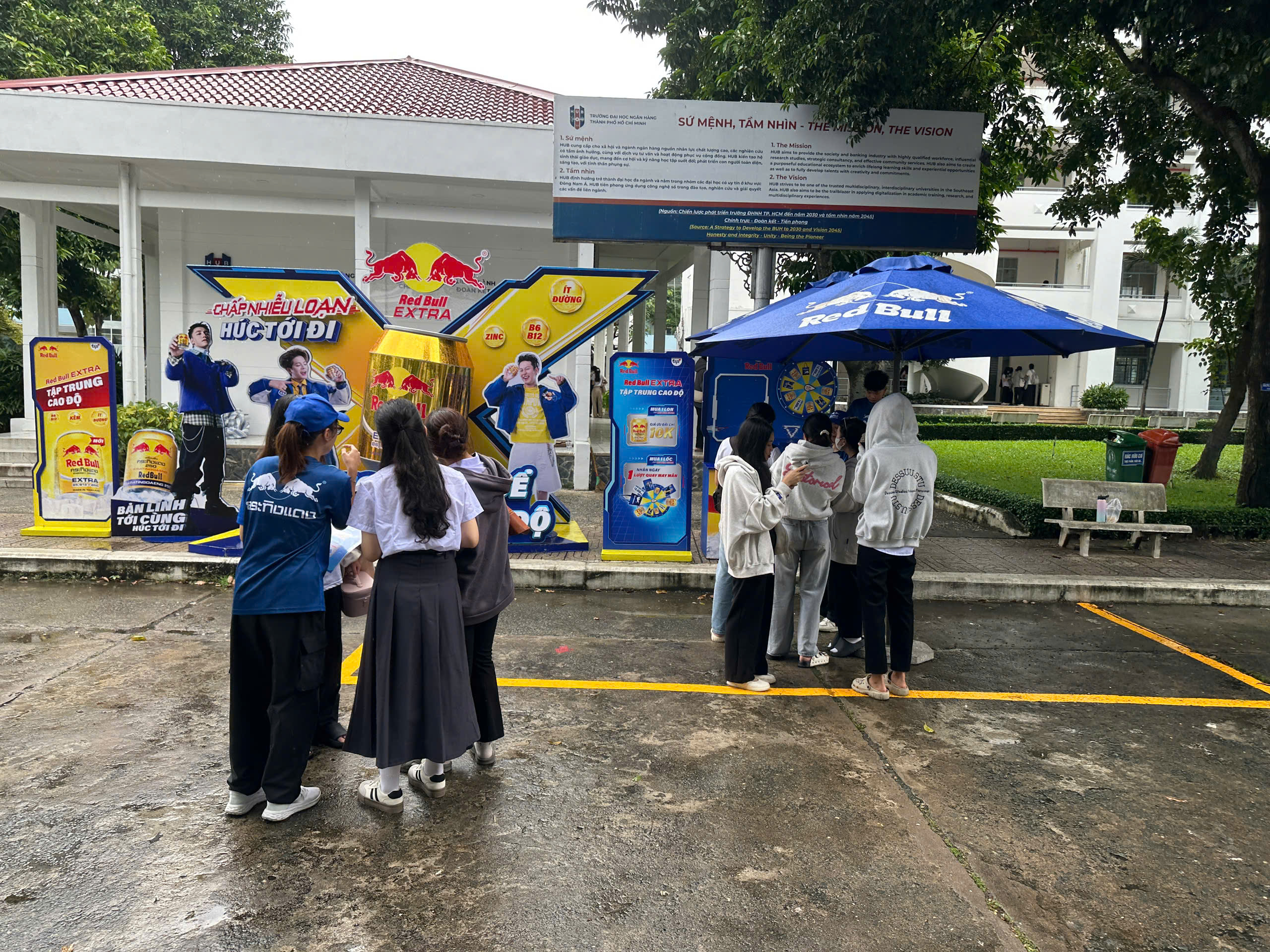 Phát Red Bull cho các bạn sinh viên . Mỗi bạn tới booth sẽ nhận được một lon Red bull miễn phí dùng thử.