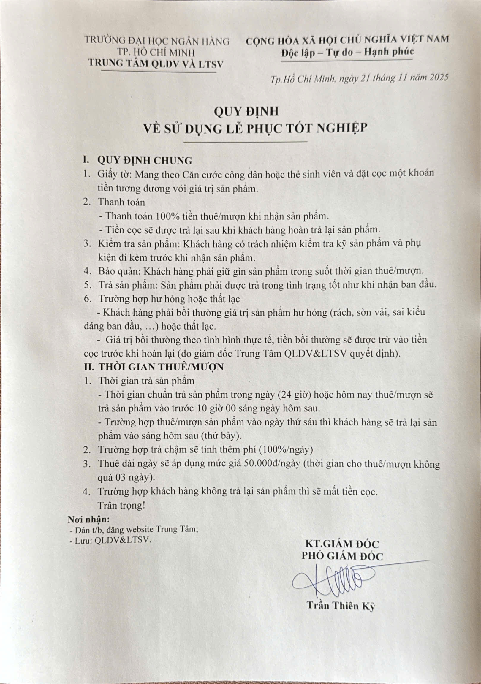 lưu ý: Quy định về sử dụng lễ phục tốt nghiệp